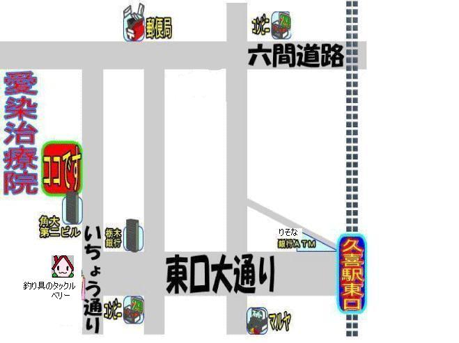 左記の地図をクリックすると大きな地図がご覧頂けます。又、遠方よりお車でお越しの方は下記の地図をご利用下さい。クリックで当院付近の地図が見れます。